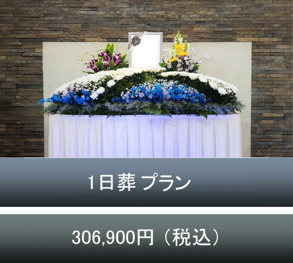 弊社がご提案する1日葬プランには、葬儀に必要なもの、消費税が含まれております。お好みに応じて祭壇デザインをお選びいただけます。(クリックで画像拡大)